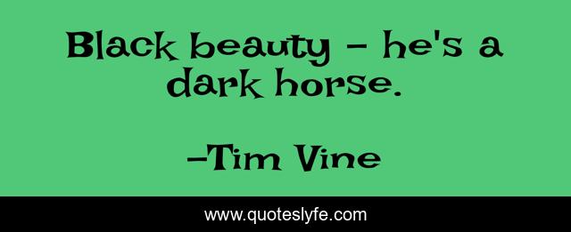 This page presents the quote "Black beauty - he's a dark horse.". Author of this quote is Tim Vine. This quote is about dark, horse, black,.