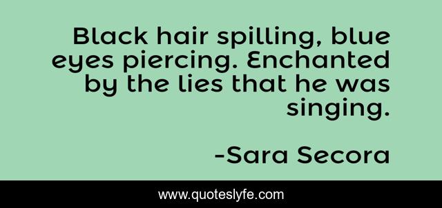 This page presents the quote "Black hair spilling, blue eyes piercing. Enchanted by the lies that he was singing.". Author of this quote is Sara Secora. This quote is about enchanted, love, relationship, quotes, lies, affection,.