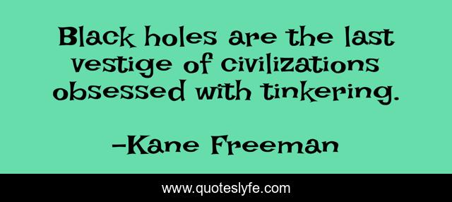 This page presents the quote "Black holes are the last vestige of civilizations obsessed with tinkering.". Author of this quote is Kane Freeman. This quote is about science, humans, humor, space,.