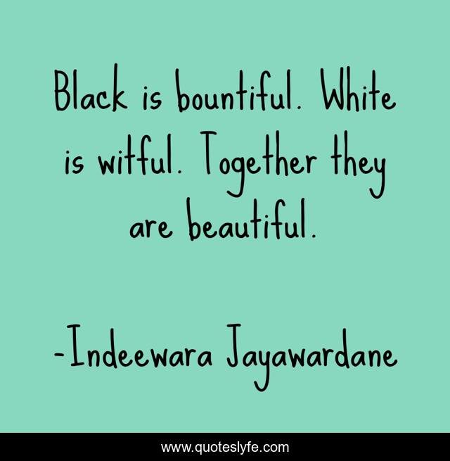 "Indeewara Jayawardane Quotes." Quoteslyfe.com, 2025. Sat. 06 Dec. 2025. <https://www.quoteslyfe.com/quote/Black-is-bountiful-White-is-witful-Together-200446>.
