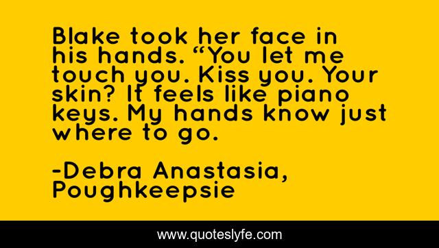 This page presents the quote "Blake took her face in his hands. “You let me touch you. Kiss you. Your skin? It feels like piano keys. My hands know just where to go.". Author of this quote is Debra Anastasia, Poughkeepsie. This quote is about romance, poughkeepsie, love, affection,.