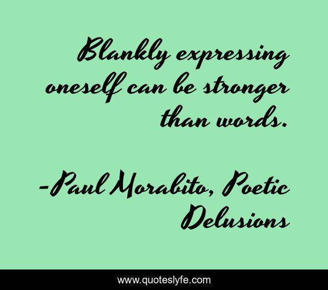 This page presents the quote "Blankly expressing oneself can be stronger than words.". Author of this quote is Paul Morabito, Poetic Delusions. This quote is about emotion, quietness, poetry, thought, thoughts-on-writing, poems, expression, philosphy,.