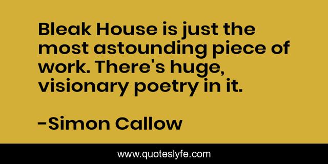 This page presents the quote "Bleak House is just the most astounding piece of work. There's huge, visionary poetry in it.". Author of this quote is Simon Callow. This quote is about house, work, visionary,.