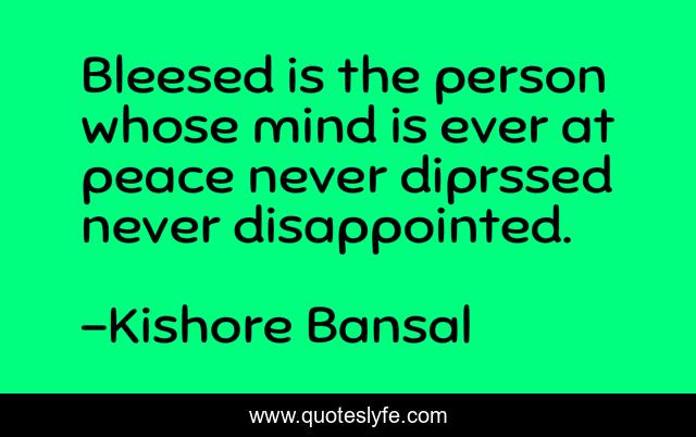 This page presents the quote "Bleesed is the person whose mind is ever at peace never diprssed never disappointed.". Author of this quote is Kishore Bansal. This quote is about mind, dipressed, peace, disappointed, blessed,.