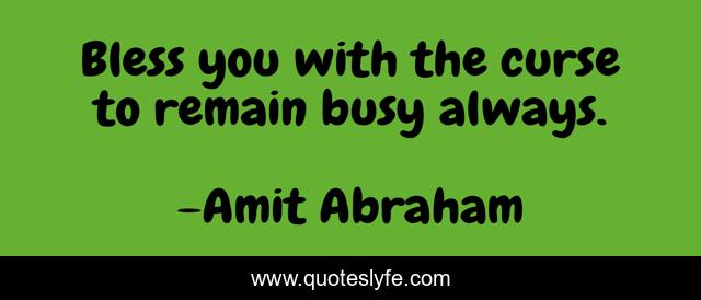 This page presents the quote "Bless you with the curse to remain busy always.". Author of this quote is Amit Abraham. This quote is about busy, curse, attention,.