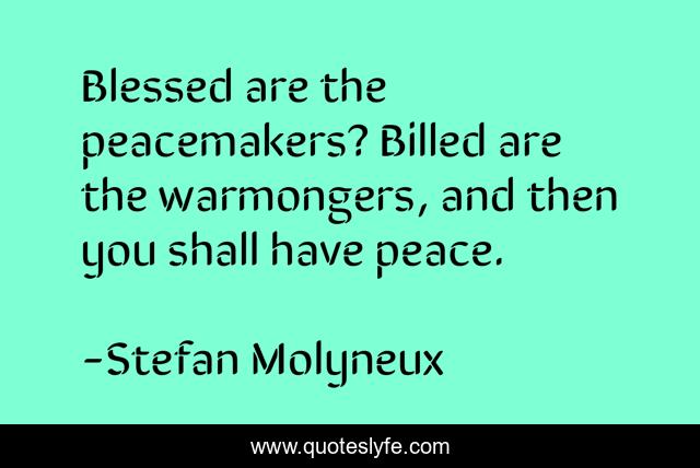This page presents the quote "Blessed are the peacemakers? Billed are the warmongers, and then you shall have peace.". Author of this quote is Stefan Molyneux. This quote is about society, peace, war, government,.