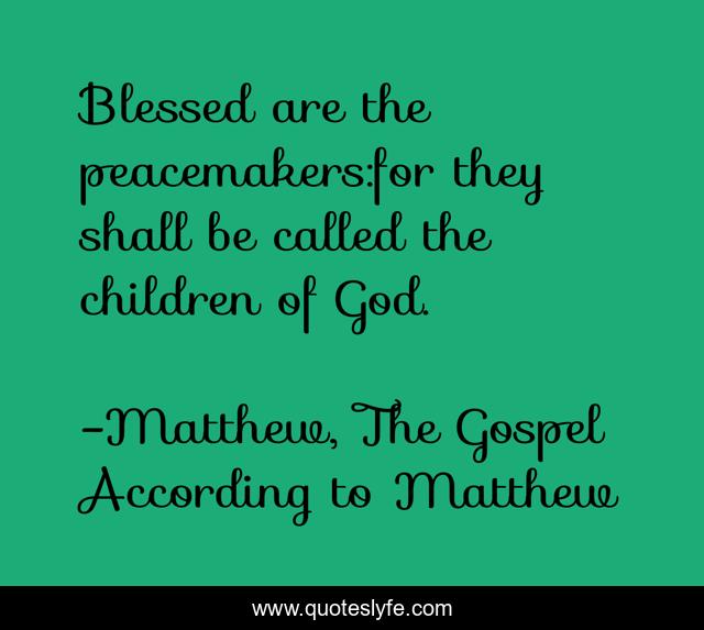 "Matthew, The Gospel According to Matthew Quotes." Quoteslyfe.com, 2025. Fri. 05 Dec. 2025. <https://www.quoteslyfe.com/quote/Blessed-are-the-peacemakers-for-they-shall-73256>.