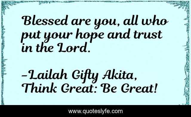 "Lailah Gifty Akita, Think Great: Be Great! Quotes." Quoteslyfe.com, 2025. Fri. 05 Dec. 2025. <https://www.quoteslyfe.com/quote/Blessed-are-you-all-who-put-your-121343>.