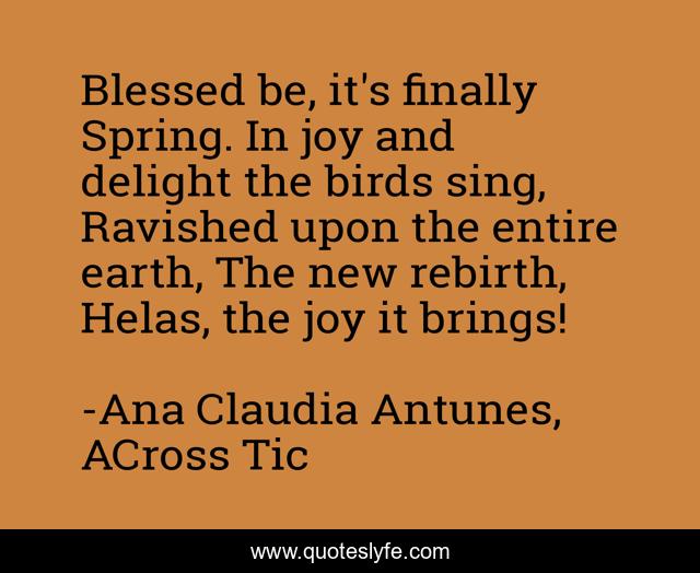 "Ana Claudia Antunes, ACross Tic Quotes." Quoteslyfe.com, 2025. Fri. 05 Dec. 2025. <https://www.quoteslyfe.com/quote/Blessed-be-it-s-finally-Spring-In-72515>.