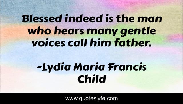 This page presents the quote "Blessed indeed is the man who hears many gentle voices call him father.". Author of this quote is Lydia Maria Francis Child. This quote is about fathers, blessings,.