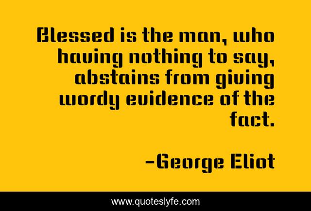This page presents the quote "Blessed is the man, who having nothing to say, abstains from giving wordy evidence of the fact.". Author of this quote is George Eliot. This quote is about giving, blessed, man,.