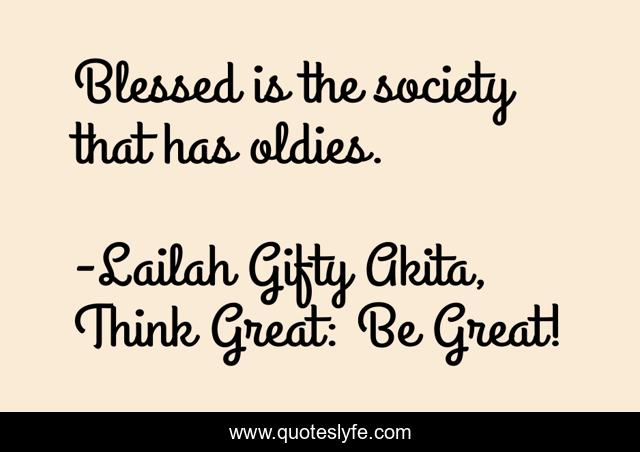 "Lailah Gifty Akita, Think Great: Be Great! Quotes." Quoteslyfe.com, 2025. Mon. 08 Dec. 2025. <https://www.quoteslyfe.com/quote/Blessed-is-the-society-that-has-oldies-102698>.