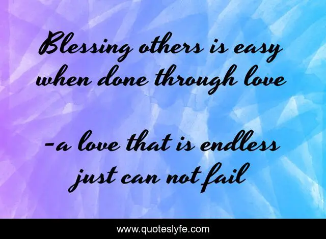 "a love that is endless just can not fail Quotes." Quoteslyfe.com, 2025. Fri. 05 Dec. 2025. <https://www.quoteslyfe.com/quote/Blessing-others-is-easy-when-done-through-49423>.