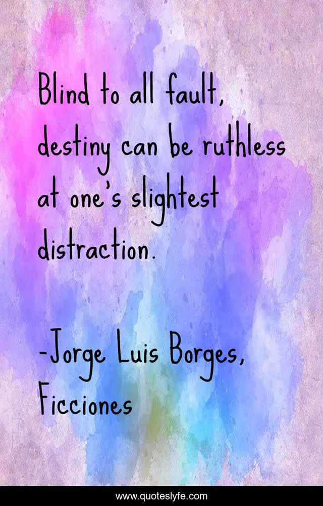 "Jorge Luis Borges, Ficciones Quotes." Quoteslyfe.com, 2025. Fri. 05 Dec. 2025. <https://www.quoteslyfe.com/quote/Blind-to-all-fault-destiny-can-be-107655>.