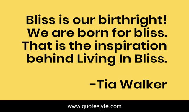 This page presents the quote "Bliss is our birthright! We are born for bliss. That is the inspiration behind Living In Bliss.". Author of this quote is Tia Walker. .