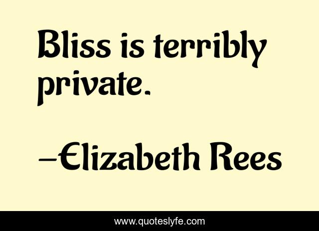 "Elizabeth Rees Quotes." Quoteslyfe.com, 2025. Fri. 05 Dec. 2025. <https://www.quoteslyfe.com/quote/Bliss-is-terribly-private-255456>.