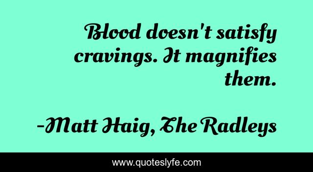 "Matt Haig, The Radleys Quotes." Quoteslyfe.com, 2025. Fri. 05 Dec. 2025. <https://www.quoteslyfe.com/quote/Blood-doesn-t-satisfy-cravings-It-magnifies-177807>.