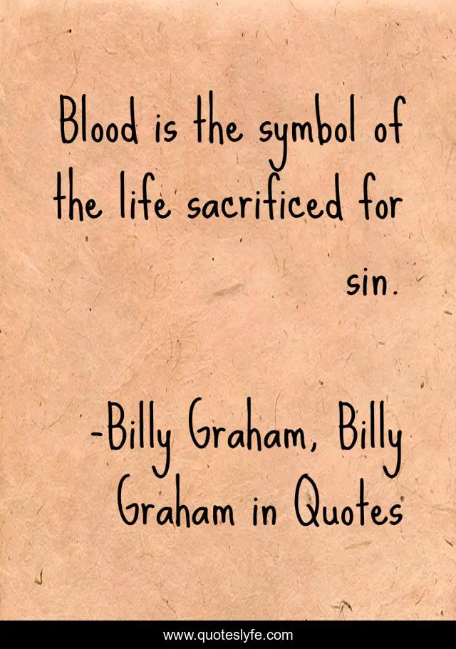 "Billy Graham, Billy Graham in Quotes Quotes." Quoteslyfe.com, 2025. Mon. 08 Dec. 2025. <https://www.quoteslyfe.com/quote/Blood-is-the-symbol-of-the-life-152802>.
