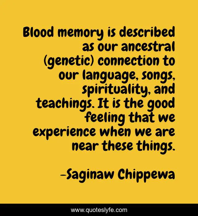 "Saginaw Chippewa Quotes." Quoteslyfe.com, 2025. Sat. 06 Dec. 2025. <https://www.quoteslyfe.com/quote/Blood-memory-is-described-as-our-ancestral-44370>.