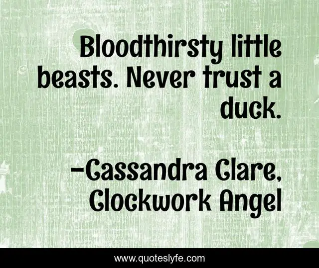 "Cassandra Clare, Clockwork Angel Quotes." Quoteslyfe.com, 2025. Mon. 08 Dec. 2025. <https://www.quoteslyfe.com/quote/Bloodthirsty-little-beasts-Never-trust-a-duck-42880>.