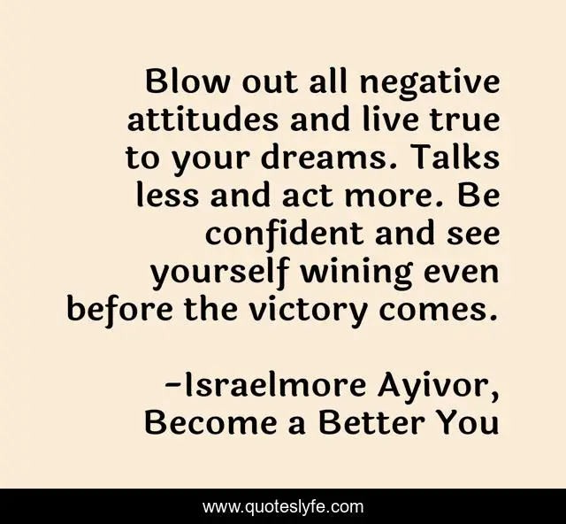 "Israelmore Ayivor, Become a Better You Quotes." Quoteslyfe.com, 2025. Sun. 07 Dec. 2025. <https://www.quoteslyfe.com/quote/Blow-out-all-negative-attitudes-and-live-36696>.