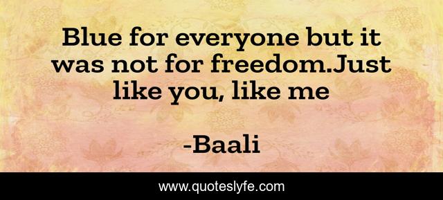 This page presents the quote "Blue for everyone but it was not for freedom.Just like you, like me". Author of this quote is Baali. This quote is about freedom, free-will, life,.