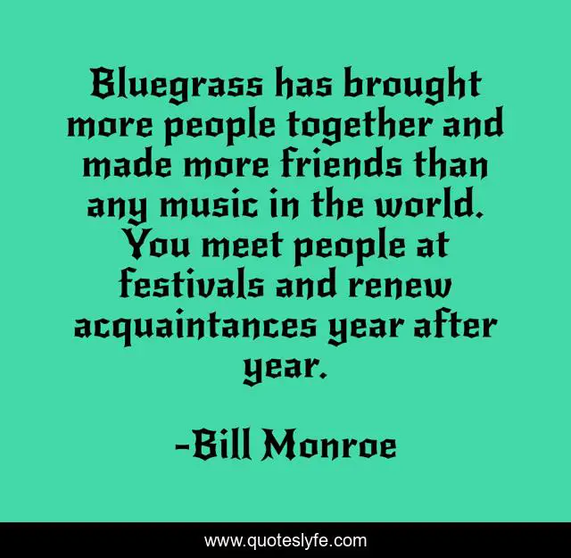"Bill Monroe Quotes." Quoteslyfe.com, 2025. Sat. 06 Dec. 2025. <https://www.quoteslyfe.com/quote/Bluegrass-has-brought-more-people-together-and-296005>.