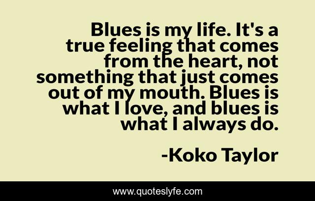 This page presents the quote "Blues is my life. It's a true feeling that comes from the heart, not something that just comes out of my mouth. Blues is what I love, and blues is what I always do.". Author of this quote is Koko Taylor. This quote is about heart, life, love, affection,.