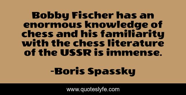 This page presents the quote "Bobby Fischer has an enormous knowledge of chess and his familiarity with the chess literature of the USSR is immense.". Author of this quote is Boris Spassky. This quote is about literature, chess,.