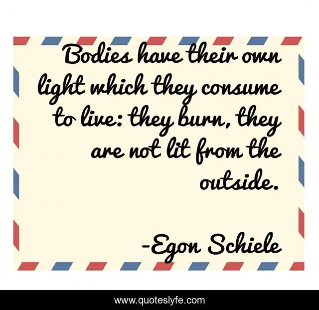 "Egon Schiele Quotes." Quoteslyfe.com, 2025. Sun. 07 Dec. 2025. <https://www.quoteslyfe.com/quote/Bodies-have-their-own-light-which-they-118252>.