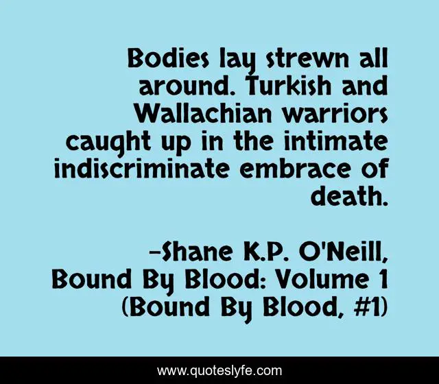 "Shane K.P. O'Neill, Bound By Blood: Volume 1 (Bound By Blood, #1) Quotes." Quoteslyfe.com, 2025. Sat. 06 Dec. 2025. <https://www.quoteslyfe.com/quote/Bodies-lay-strewn-all-around-Turkish-and-156509>.