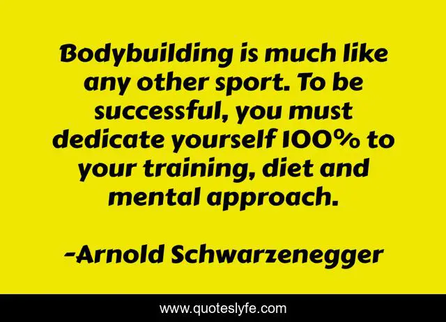 This page presents the quote "Bodybuilding is much like any other sport. To be successful, you must dedicate yourself 100% to your training, diet and mental approach.". Author of this quote is Arnold Schwarzenegger. This quote is about training, fitness, yourself,.