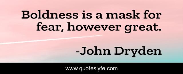 This page presents the quote "Boldness is a mask for fear, however great.". Author of this quote is John Dryden. This quote is about mask, great, boldness,.