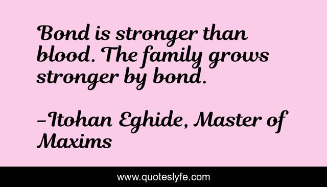 "Itohan Eghide, Master of Maxims Quotes." Quoteslyfe.com, 2025. Tue. 09 Dec. 2025. <https://www.quoteslyfe.com/quote/Bond-is-stronger-than-blood-The-family-86193>.