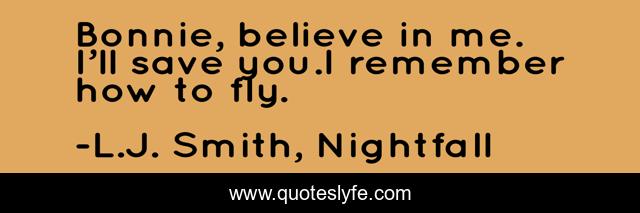 This page presents the quote "Bonnie, believe in me. I’ll save you.I remember how to fly.". Author of this quote is L.J. Smith, Nightfall. This quote is about romance, elena, fiction, vampire, paranormal,.