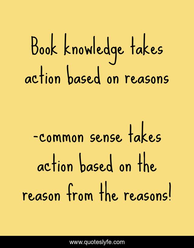 "common sense takes action based on the reason from the reasons! Quotes." Quoteslyfe.com, 2025. Fri. 05 Dec. 2025. <https://www.quoteslyfe.com/quote/Book-knowledge-takes-action-based-on-reasons-173124>.