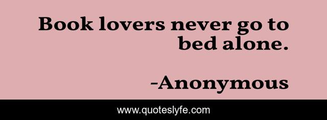 This page presents the quote "Book lovers never go to bed alone.". Author of this quote is Anonymous. This quote is about books, reading,.