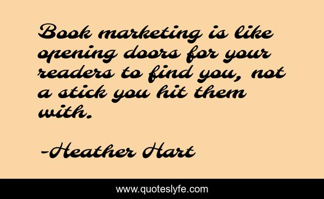 This page presents the quote "Book marketing is like opening doors for your readers to find you, not a stick you hit them with.". Author of this quote is Heather Hart. This quote is about book-marketing, authors,.