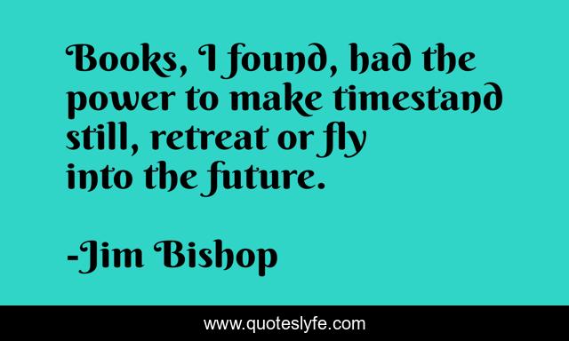 This page presents the quote "Books, I found, had the power to make timestand still, retreat or fly into the future.". Author of this quote is Jim Bishop. .