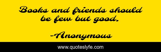 This page presents the quote "Books and friends should be few but good.". Author of this quote is Anonymous. .