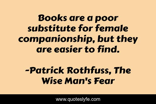 This page presents the quote "Books are a poor substitute for female companionship, but they are easier to find.". Author of this quote is Patrick Rothfuss, The Wise Man's Fear. This quote is about relationships, books,.