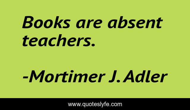 "Mortimer J. Adler Quotes." Quoteslyfe.com, 2025. Mon. 08 Dec. 2025. <https://www.quoteslyfe.com/quote/Books-are-absent-teachers-66609>.
