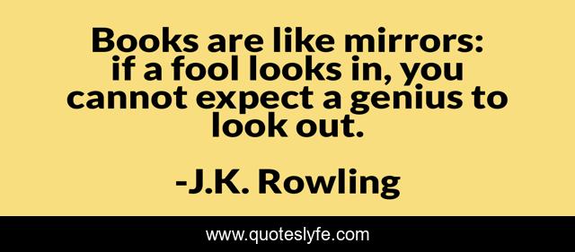 This page presents the quote "Books are like mirrors: if a fool looks in, you cannot expect a genius to look out.". Author of this quote is J.K. Rowling. .