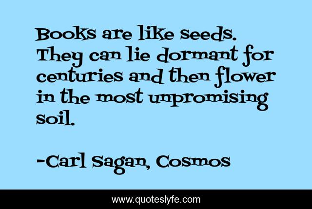 This page presents the quote "Books are like seeds. They can lie dormant for centuries and then flower in the most unpromising soil.". Author of this quote is Carl Sagan, Cosmos. .