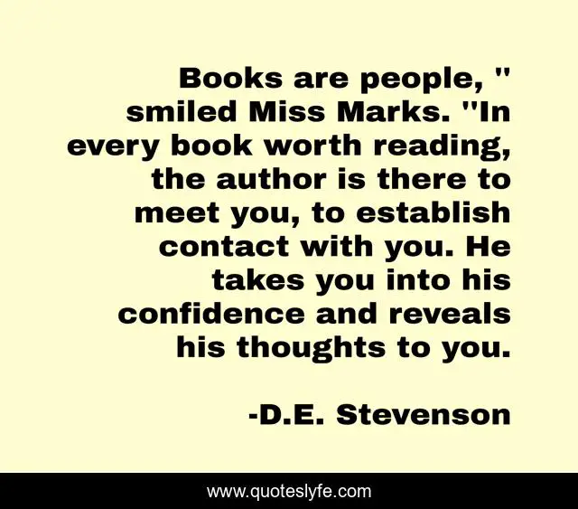 "D.E. Stevenson Quotes." Quoteslyfe.com, 2025. Fri. 05 Dec. 2025. <https://www.quoteslyfe.com/quote/Books-are-people-smiled-Miss-Marks-In-178539>.