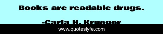 This page presents the quote "Books are readable drugs.". Author of this quote is Carla H. Krueger. This quote is about drugs, writing, books, words, words-have-power, carla-h-krueger,.