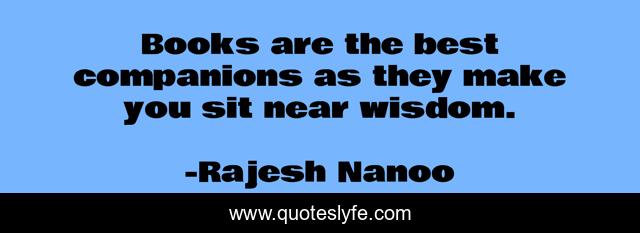 This page presents the quote "Books are the best companions as they make you sit near wisdom.". Author of this quote is Rajesh Nanoo. This quote is about reading-books, friends, wisely, learner, readers,.