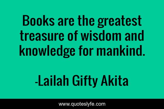 "Lailah Gifty Akita Quotes." Quoteslyfe.com, 2025. Tue. 09 Dec. 2025. <https://www.quoteslyfe.com/quote/Books-are-the-greatest-treasure-of-wisdom-241169>.