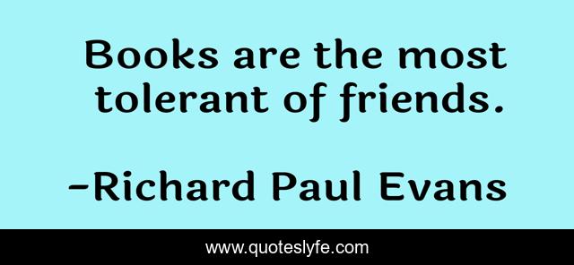 "Richard Paul Evans Quotes." Quoteslyfe.com, 2025. Sat. 06 Dec. 2025. <https://www.quoteslyfe.com/quote/Books-are-the-most-tolerant-of-friends-42946>.