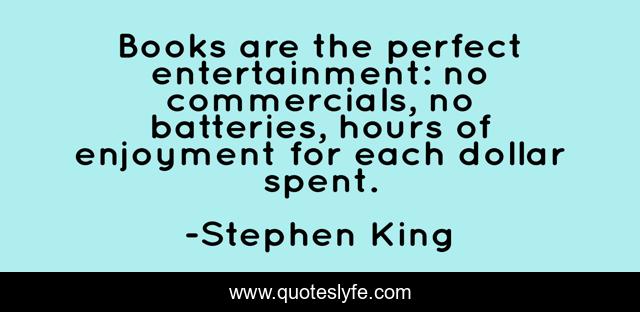 "Stephen King Quotes." Quoteslyfe.com, 2025. Sat. 06 Dec. 2025. <https://www.quoteslyfe.com/quote/Books-are-the-perfect-entertainment-no-commercials-43316>.